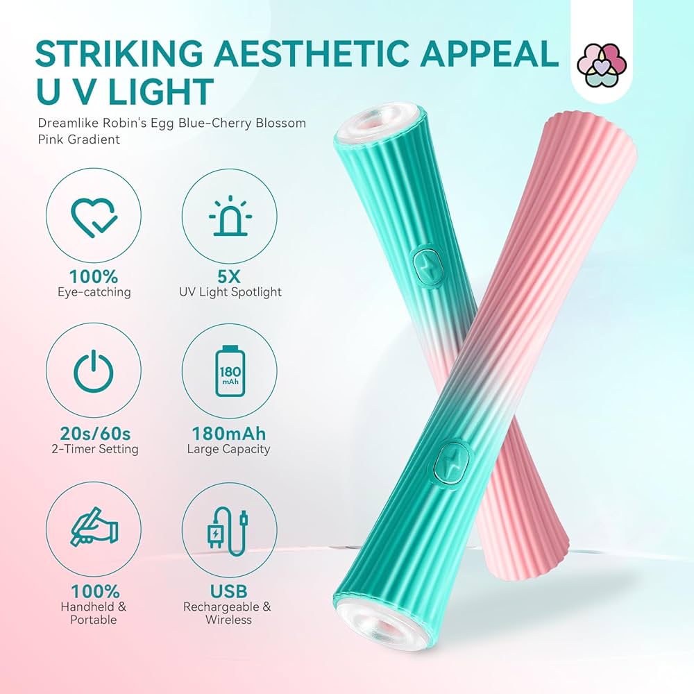 دستگاه یووی چراغ قوه ای ناخن با طراحی جمع و جور و قابل حمل، گزینهای کاربردی برای خشک کردن سریع لاکژل، ژل، بیسژل و پلیژل در کوتاهترین زمان است. این دستگاه با نور UV متمرکز روی نوک ناخنها کار میکند و برای مواقعی که دسترسی به دستگاه بزرگ ندارید یا میخواهید یک ناخن خاص را ترمیم کنید، بسیار کاربرد دارد.